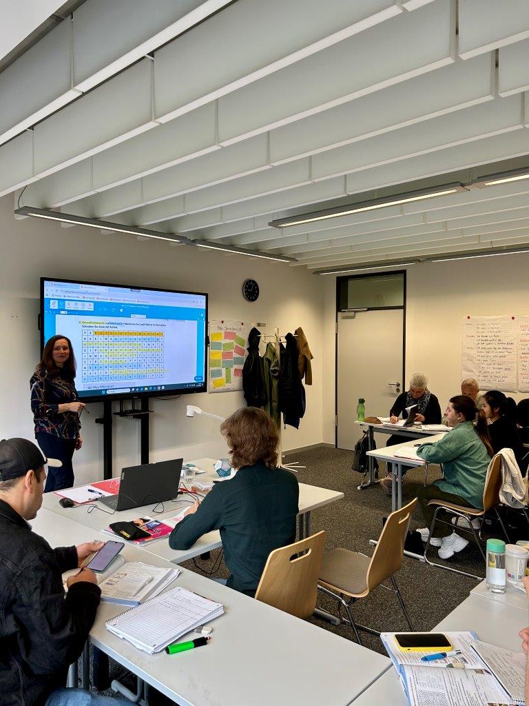 Das Wort „Arbeitsunfähigkeitsbescheinigung“ gehört zu den ersten großen sprachlichen Herausforderungen im Kurs, denn die Aussprache ist keineswegs einfach! Mindestens fünf Minuten wird intensiv daran gearbeitet, bevor sich der Dozent einen kleinen Spaß erlaubt und erklärt, dass man stattdessen einfach „AU“ sagen könne. Die Reaktion der Teilnehmenden ist jedes Mal unbezahlbar!